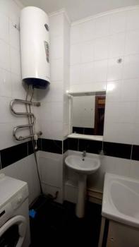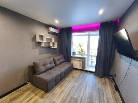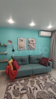 Квартира с евроремонтом, выполненным с использованием качественных материалов. В комнате есть вся необходимая мебель и техника: кондиционер, телевизор, стиральная машина и диван со спальным местом. На данный момент в квартире нет холодильника, его привезут в конце января. А также, в спальне нет кровати, она планируется к покупке.