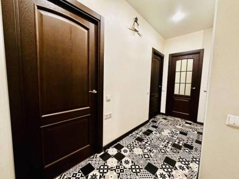 Особенности: Гардеробная, Ламинат, Натяжной потолок, Пластиковые окна, Стены выровнены, Софиты