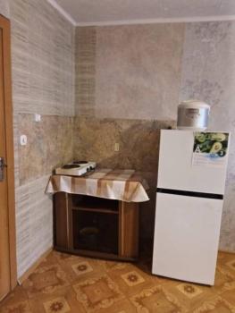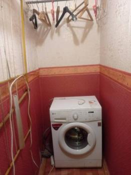 На кухне плита, микроволновка, холодильник. В ванной стиральная машина автомат. Комната закрываются на ключ.