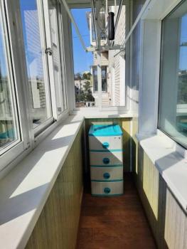Особенности: Железная дверь, Линолеум, Межкомнатные двери, Натяжной потолок, Решётки на окнах, Пластиковые окна, Большая остекленная лоджия