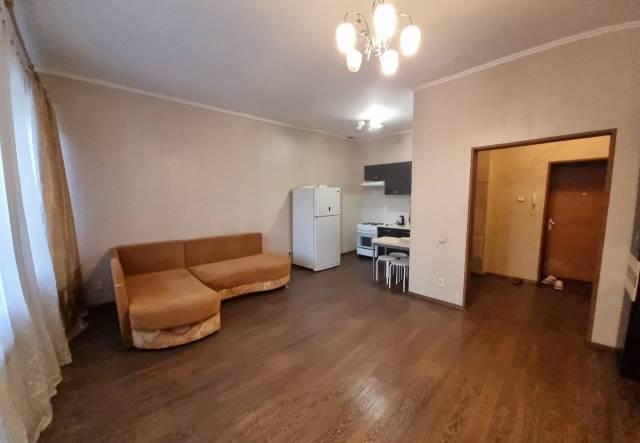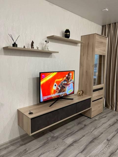 Квартира с евроремонтом, выполненным с использованием качественных материалов. В комнате есть вся необходимая мебель и техника: кондиционер, телевизор, стиральная машина и диван со спальным местом. На данный момент в квартире нет холодильника, его привезут в конце января. А также, в спальне нет кровати, она планируется к покупке.