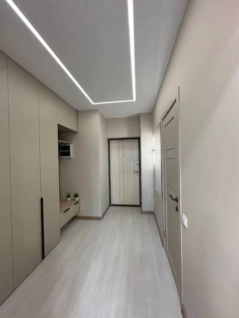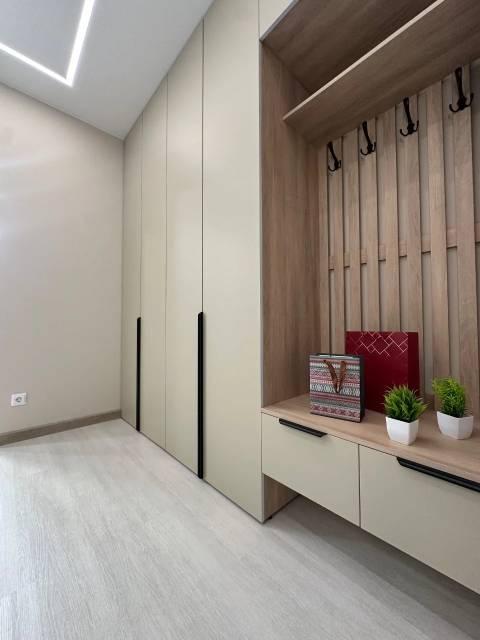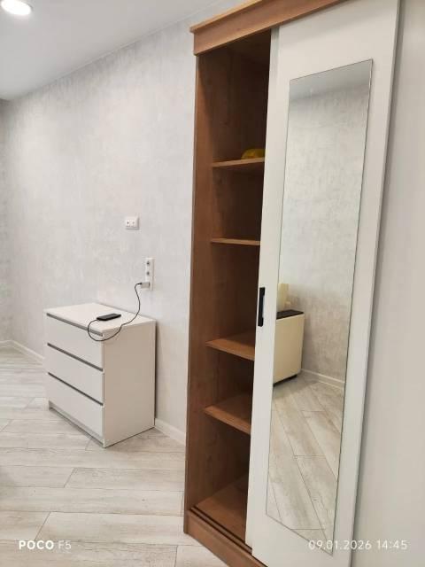 Особенности: Гардеробная, Ламинат, Натяжной потолок, Пластиковые окна, Стены выровнены, Софиты