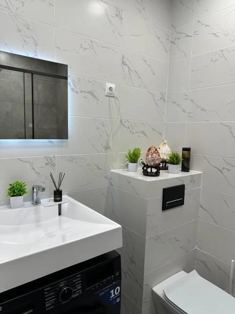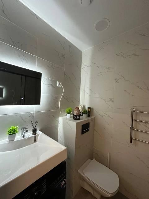 Совмещенный санузел. Новая ванна и сантехника.