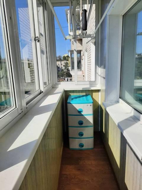 Особенности: Железная дверь, Линолеум, Межкомнатные двери, Натяжной потолок, Решётки на окнах, Пластиковые окна, Большая остекленная лоджия