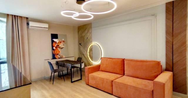 Квартира оформлена с дизайнерским ремонтом и полностью готова к заселению. В комнатах и на кухне есть вся необходимая мебель. К вашим услугам современная техника: кондиционер, холодильник, телевизор и стиральная машина. Санузел совмещённый, в ванной комнате установлена ванна. Окна выходят на улицу, а также есть балкон, где можно наслаждаться свежим воздухом.