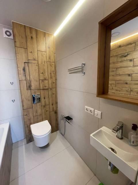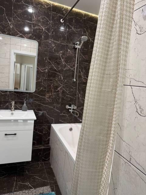 В квартире сделан косметический ремонт, поэтому она выглядит свежо и комфортно. Есть необходимая мебель как в комнате, так и на кухне, поэтому можно сразу заехать и начать жить. В наличии вся необходимая техника: кондиционер для поддержания комфортной температуры, холодильник и стиральная машина, что делает проживание здесь особенно удобным. Ванная комната оборудована ванной, поэтому можно расслабиться после трудового дня.