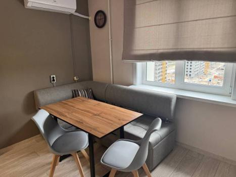 Сдается современная квартира, на длительный срок, с евро-ремонтом на втором этаже монолитного дома, построенного в 2025 году. Дом оснащен консьержем и двумя пассажирскими лифтами, а также грузовым лифтом.