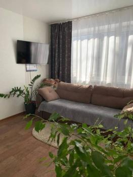 Особенности: Большой утепленный балкон, гардеробная и шкаф-купе в коридоре, в комнате диван, мебель для гостинной