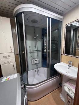 Санузел совмещенный, оформлен в стильном мраморном стиле. В квартире установлена новая сантехника и бойлер.