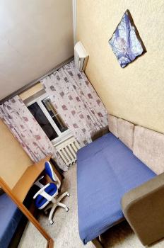 Западная сторона, Окна пластик, ТV антенна, Холодильник, Эл. чайник, Двуспальный диван, Стол, стул, тумба. Комната расположена в секции на 5 комнат, в секции имеется кухня, для каждого хозяина свой кухонный мебельный гарнитур, кухонная плита. Санузел раздельный.