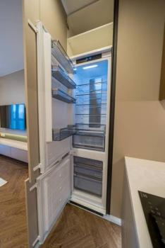 санузел - совмещённый, мебель - кухня, хранение одежды, спальные места, холодильник, плита, микроволновка, стиральная машина, посудомоечная машина, телевизор.