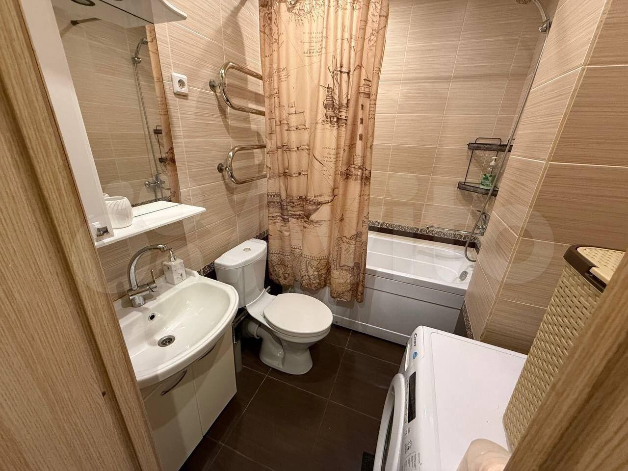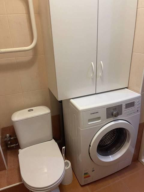 В наличии вся необходимая мебель: шкафы, диван, кровать, а также бытовая техника — холодильник, стиральная машина, микроволновая печь и телевизор с кабельным/цифровым ТВ. Из окон открывается вид на тихий двор с открытой парковкой.