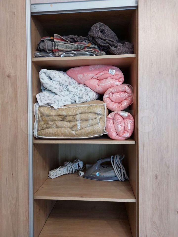 - в прихожей - вместительные шкафы для одежды, есть гладильная доска, утюг, сушилка для белья, стремянка;