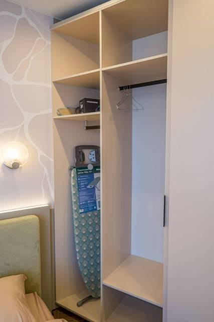 Огромным встроенным шкафом купе с дополнительным пеналом;