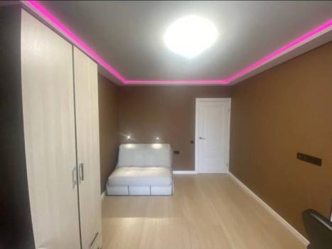 В квартире выполнен косметический ремонт. Кухня оснащена необходимой бытовой техникой. Комната светлая и просторная, с удобным расположением мебели — шкафами. Покупку дополнительной мебели можно обсудить, в том числе в счет арендной платы.