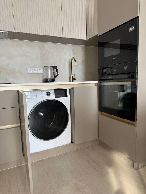 санузел - совмещённый, мебель - кухня, хранение одежды, спальные места, кондиционер, холодильник, плита, микроволновка, стиральная машина, посудомоечная машина, водонагреватель, телевизор.