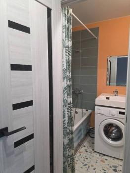 Квартира в хорошем состоянии после косметического ремонта. В комнате и на кухне имеется вся необходимая мебель, а также установлена современная техника: кондиционер, холодильник, стиральная машина и телевизор. В совмещенном санузле установлена ванна, что делает квартиру удобной для проживания.