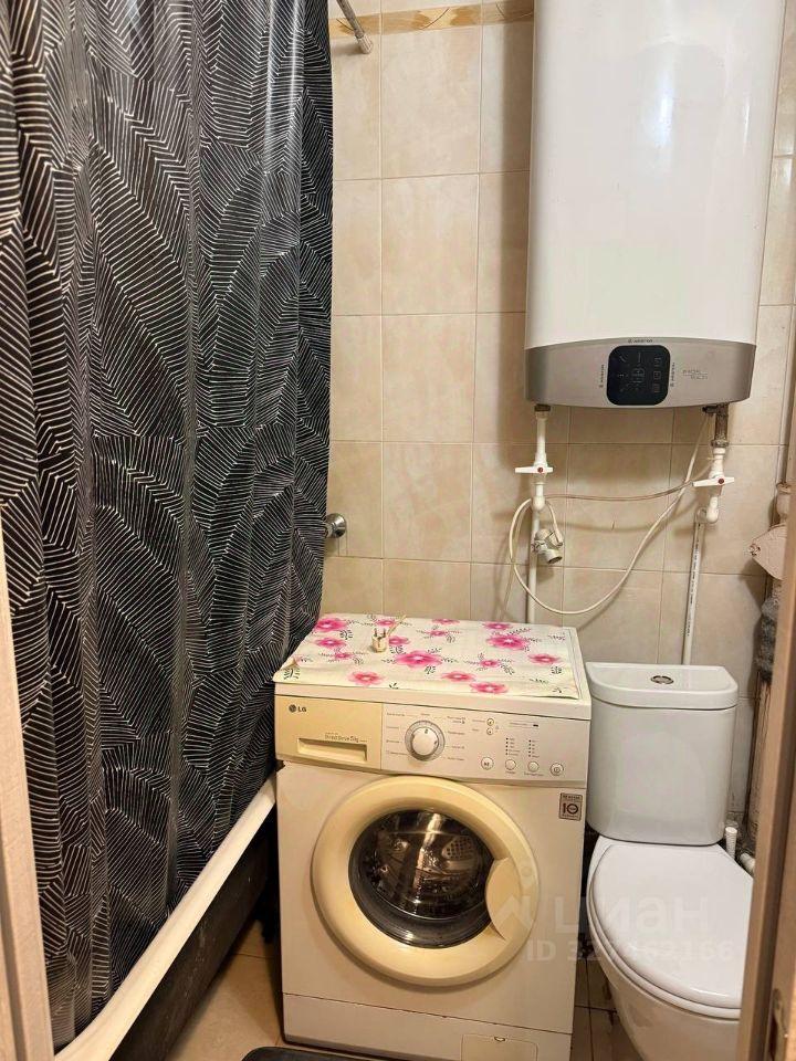 Санузел раздельный, оборудован небольшой ванной и стиральной машиной.