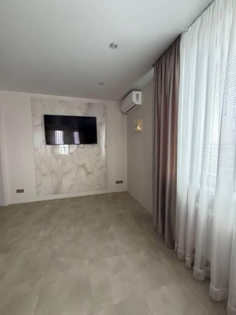 В комнате установлен кондиционер и телевизор с кабельным/цифровым ТВ. Из мебели — вместительные шкафы и удобный диван. Лоджия застеклена, что позволяет использовать её как дополнительное пространство.