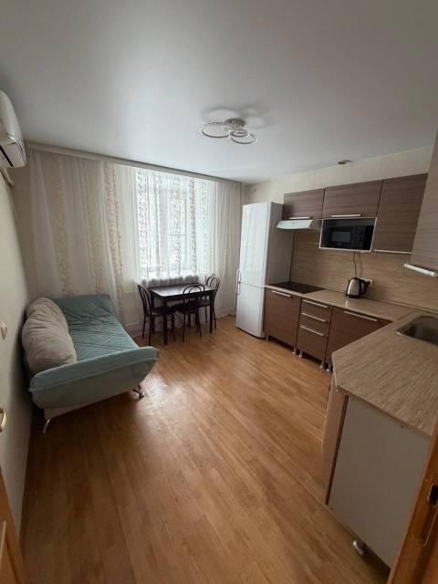 Квартира с ремонтом, полностью меблирована. В комнате и на кухне уже есть необходимая мебель, поэтому можно сразу заселяться. Вас порадует наличие кондиционера и стиральной машины — все для вашего комфорта. Ванная комната оснащена ванной, что позволит расслабиться после рабочего дня.