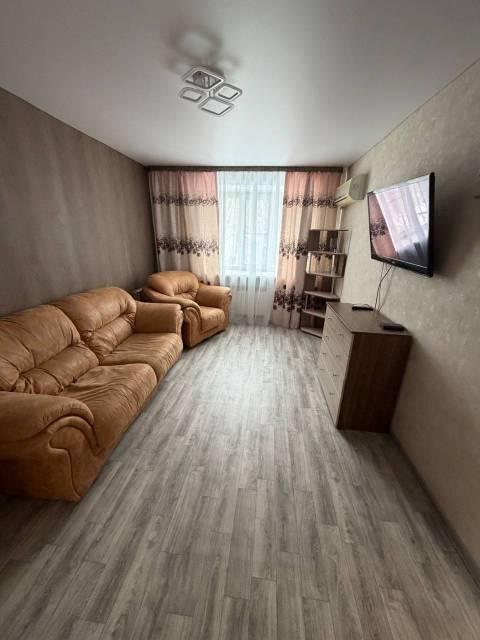 Квартира от собственника. Рассчитана на проживание 1-2 человек. Есть все: посуда, постельное белье, одеяло, подушки, утюг, гладильная доска, электрочайник, фен, сушилка для белья, безлимитный интернет входит в стоимость + телевидение okko.