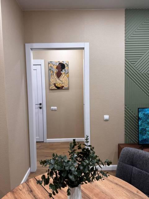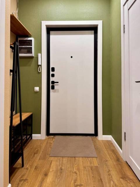 Особенности: Железная дверь, Ламинат, Межкомнатные двери, Натяжной потолок