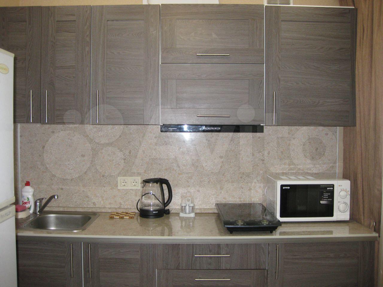 В квартире: двуспальный раздвижной диван, шкаф, тумба под телевизор, телевизор, кондиционер, водонагреватель-бойлер на 50 литров, стиральная машина, кухня, холодильник, индукционная плита, духовка, микроволновая печь, утюг, прихожая, обувница. Заведены интернет провода Редком. Много розеток, почти в каждом углу.
