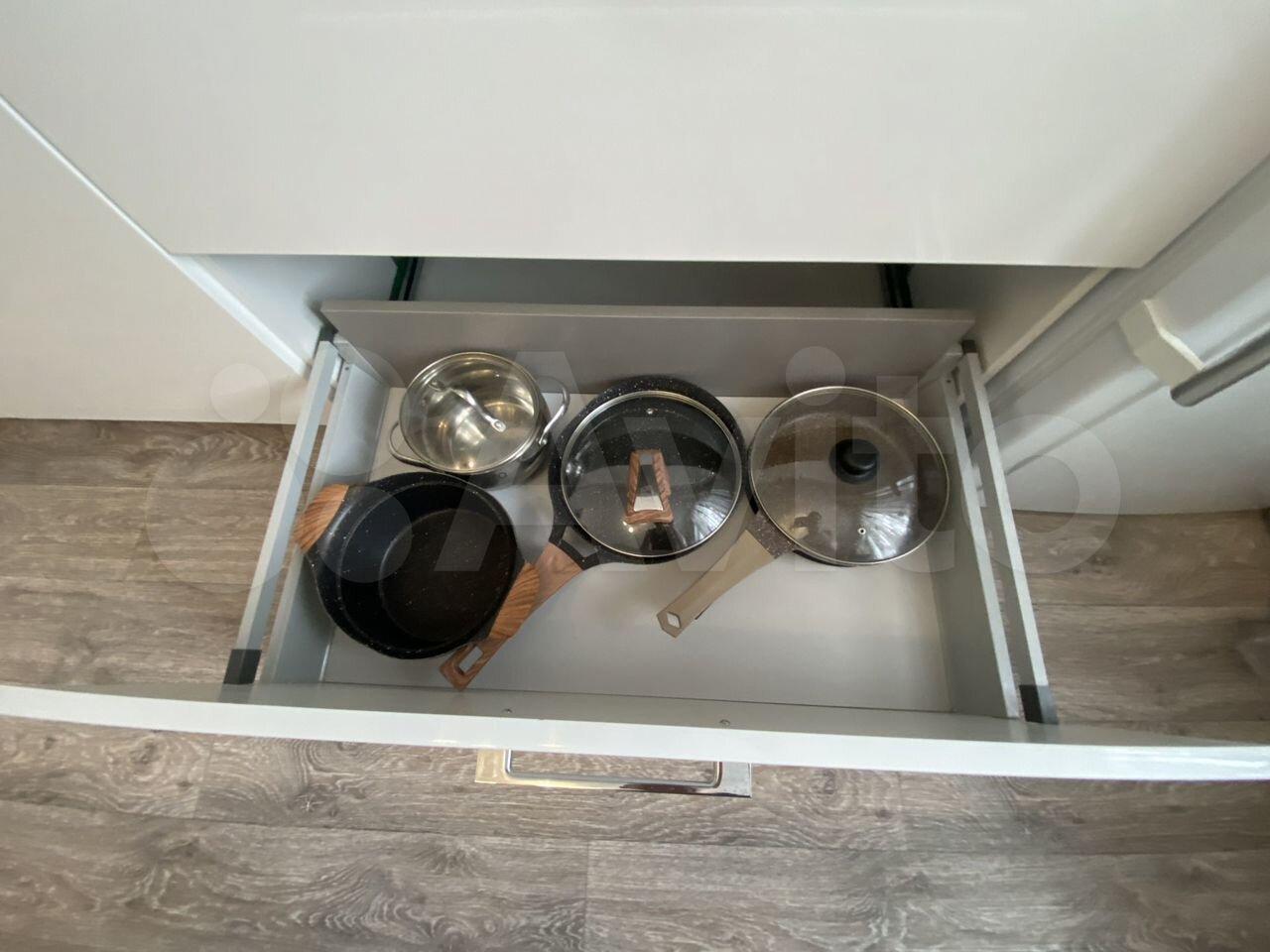 Вся необходимая для приготовления и употребления пищи посуда, столовые приборы, холодильник, электроплита, чайник, микроволновая печь, питьевая вода - фильтр «Аквафор».