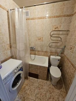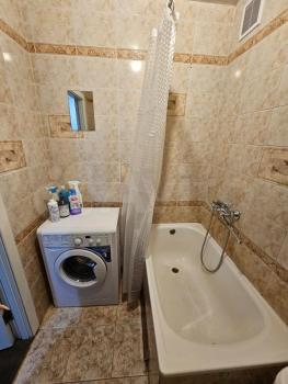 Санузел совмещенный, ванная маленькая, душ. Стиральная машинка.