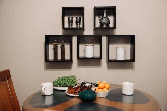 Мебель: Диван, Кухонный гарнитур, Обеденный стол