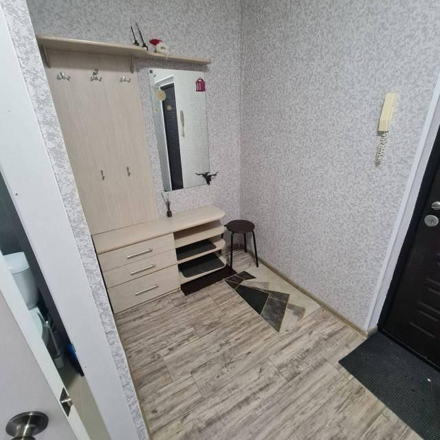 Квартира частично мебелирована (двухспальная кровать, шкаф купе, кухонный гарнитур), имеется техника (стиральная машина, варочная поверхность, холодильник, кондиционер, ).