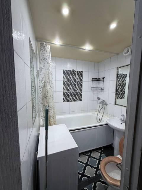 Балкон добавляет дополнительное пространство для хранения. Санузел совмещённый, новый унитаз, ванная, раковина. Есть хорошая стиральная машина. Парковка открытая во дворе, проблем с местом нет.