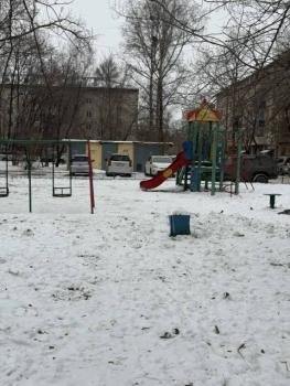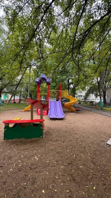 Во дворе есть детская площадка, что удобно для семей с детьми. Парковка открытая, во дворе.