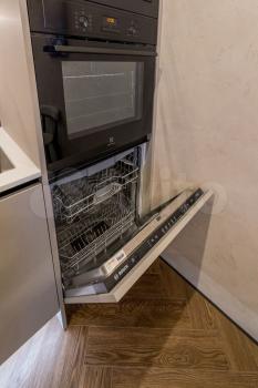 Просторная кухня 8 кв.м. с встроенной бытовой техникой (духовой шкаф, варочная панель, посудомоечная машина). Утепленная лоджия 6 кв.м.