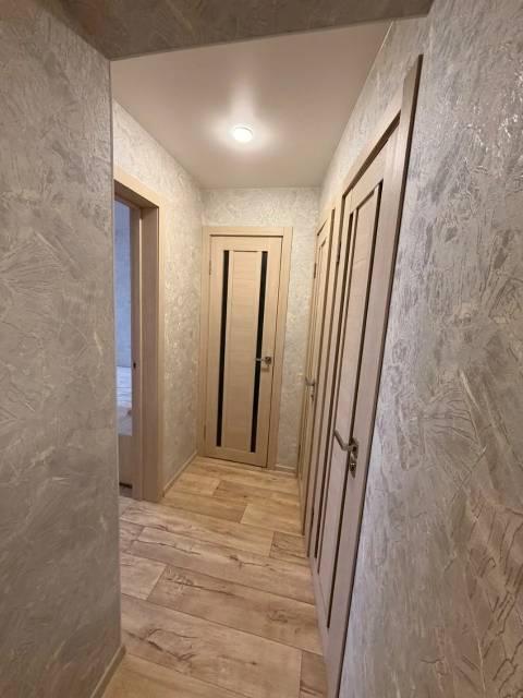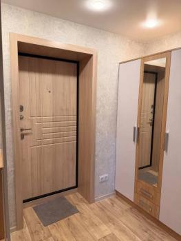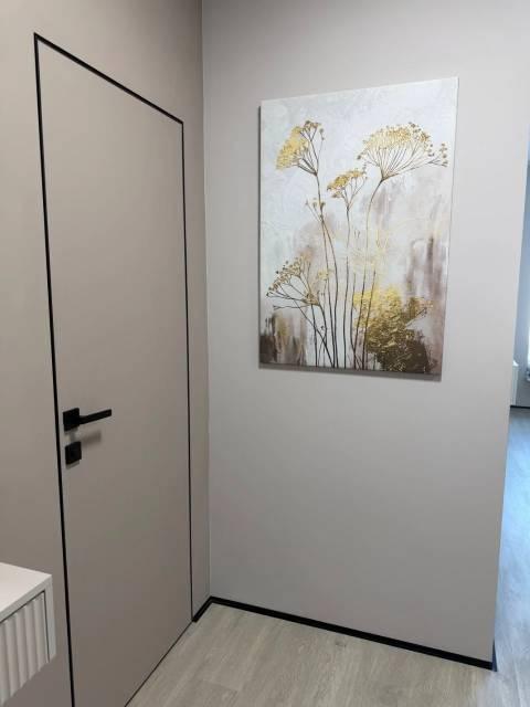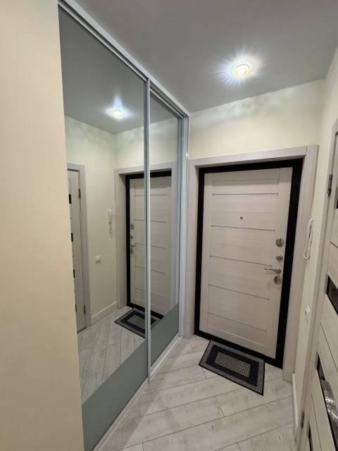 Особенности: Гардеробная, Железная дверь, Ламинат, Межкомнатные двери, Натяжной потолок, Пластиковые окна, Софиты, Стены выровнены, Тёплый пол