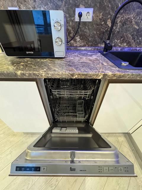 из техники: плита, микроволновая печь, телевизор, стиральная машина, холодильник, посудомоечная машина, кондиционер, фильтр для воды, чайник, духовой шкаф, бойлер