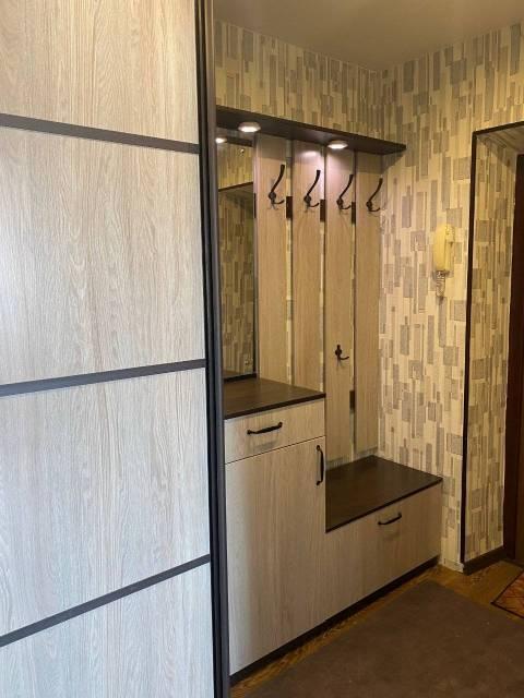 Квартира в отличном состоянии, уютная. Все необходимое для проживания имеется. Хороший кухонный гарнитур. В спальне: кровать 180*200 см. с ортопедическим матрасом, тумбочка, шкаф-купе, стол рабочий и кресло. В гостиной диван и тумба под телевизор. В прихожей вешалка и тумба под обувь.