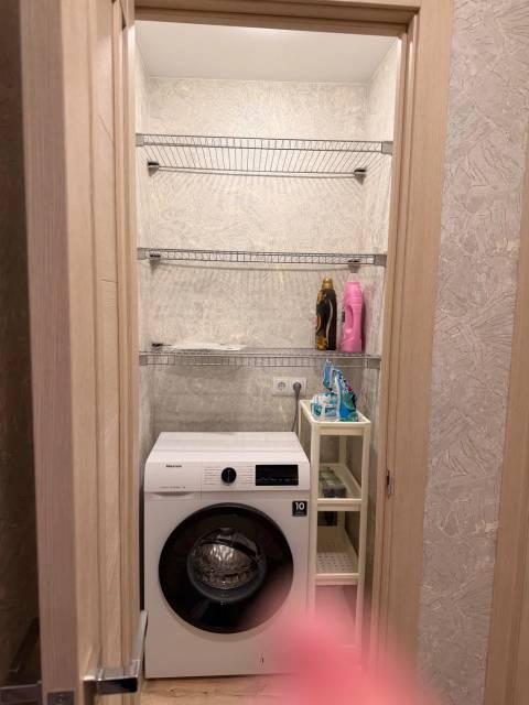 Санузел раздельный, оборудован душевой кабиной и стиральной машиной. Лоджия застеклена, что позволяет использовать ее как дополнительное пространство.