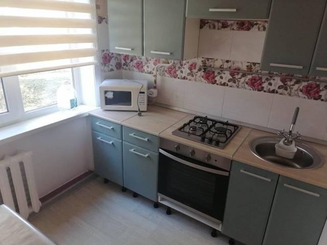 Укомплектована мебелью : диван, 2 шкафа, кресло-раскладное, стол, кухонный гарнитур, прихожая.