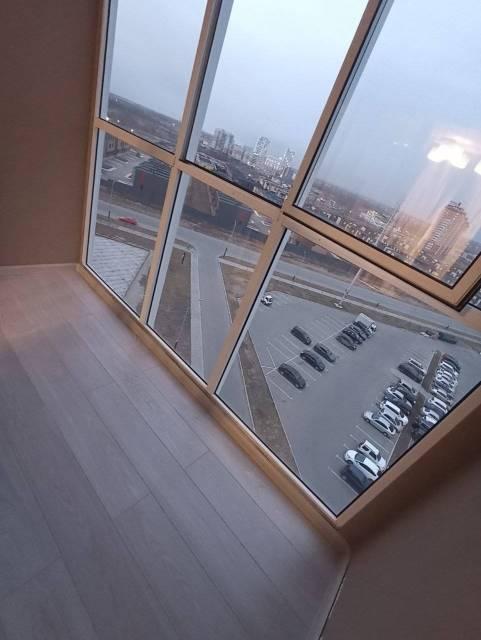 Большой балкон, Гардеробная, Железная дверь, Ковровое покрытие, Линолеум, Межкомнатные двери, Натяжной потолок, Пластиковые окна, Софиты, Стены выровнены.