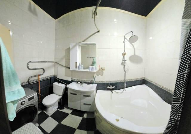Санузел совмещенный, оформлен в современном стиле. Открытая парковка во дворе позволяет удобно оставлять автомобиль.