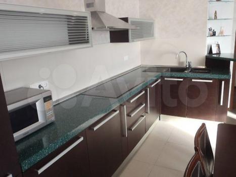 Из мебели: двуспальный диван, обеденный стол (на 6 персон), стулья, двуспальная кровать (1,6 на 2 м), тумбочки, стол, шкаф-купе, кресло. Так же имеется вся необходимая посуда и постельные принадлежности. Кухонный гарнитур, Письменный стол, Шкаф-купе.