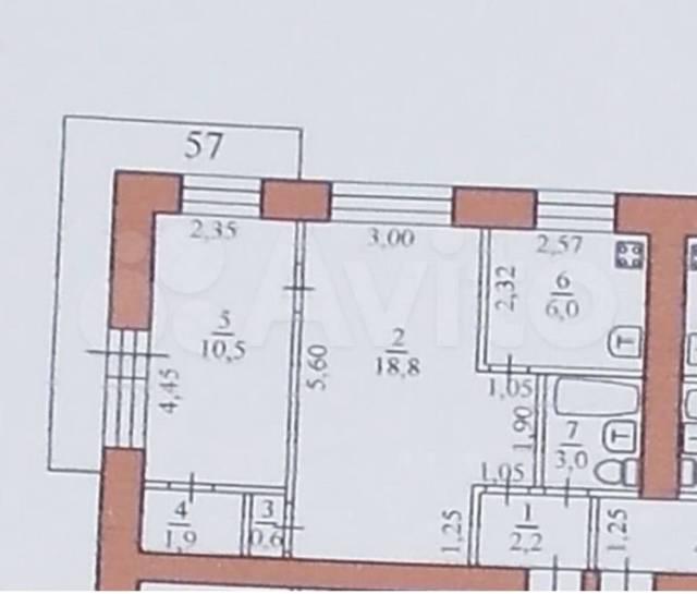 2-к квартира, 57.5 м²50 000 р.