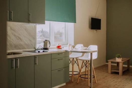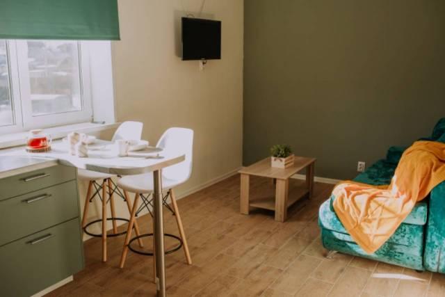 Требования: Квартира из двух комнат: кухня -зал с комфортным диваном.
