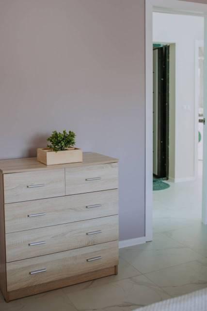 Особенности: Гардеробная, Ламинат, Межкомнатные двери, Натяжной потолок, Пластиковые окна, Стены выровнены, Тёплый пол