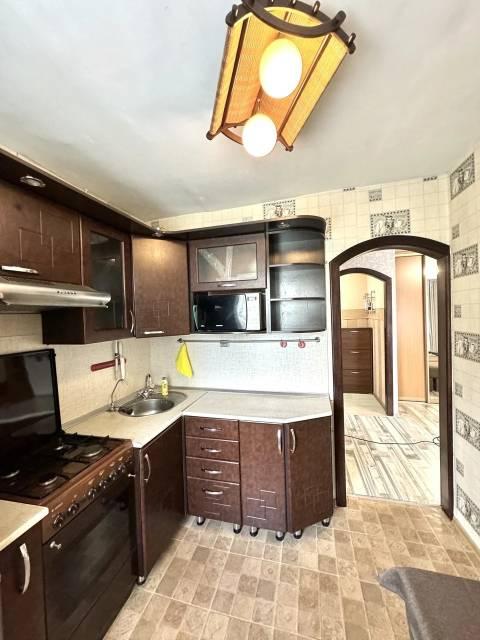 - встроенная кухня (с дубовой столешницей) с новыми большим холодильником, СВЧ, варочной панелью, вытяжкой, духовку если надо докупим.
