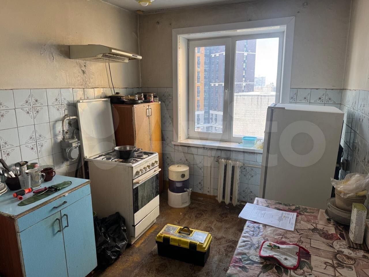 Кухня просторная, площадью 12 м², оснащена необходимой бытовой техникой, включая плиту и стиральную машину. В комнате установлены шкафы для хранения вещей. Из окон открывается вид на тихий двор.