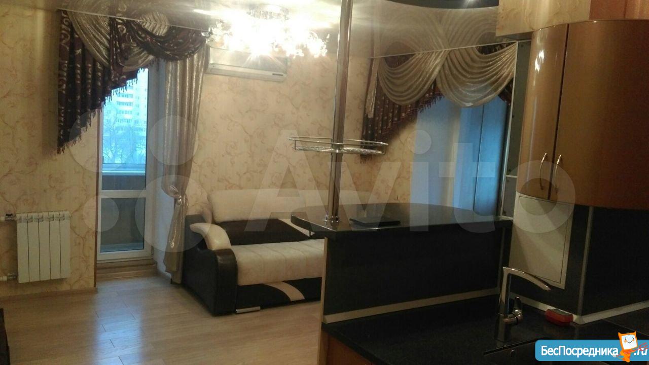Сдаётся 2-х комнатная квартира. Чистая, тёплая, солнечная с хорошим ремонтом. Из мебели: встроенная Кухня с варочной панелью и духовым шкафом, 2 шкафа-купе, 1 угловой двуспальный диван. Кондиционер, лоджия совмещена со спальней. Тёплый пол в ванной и на лоджии. В каждой комнате натяжные потолки. Установлен водонагреватель.