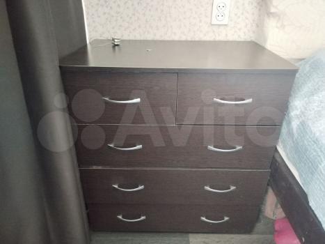 - В спальне - устойчивая кровать из бруса. Ортопедический мультипружинный матрас (новый) средней жесткости. Комод и шкаф-купе.