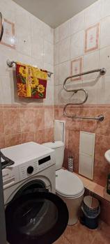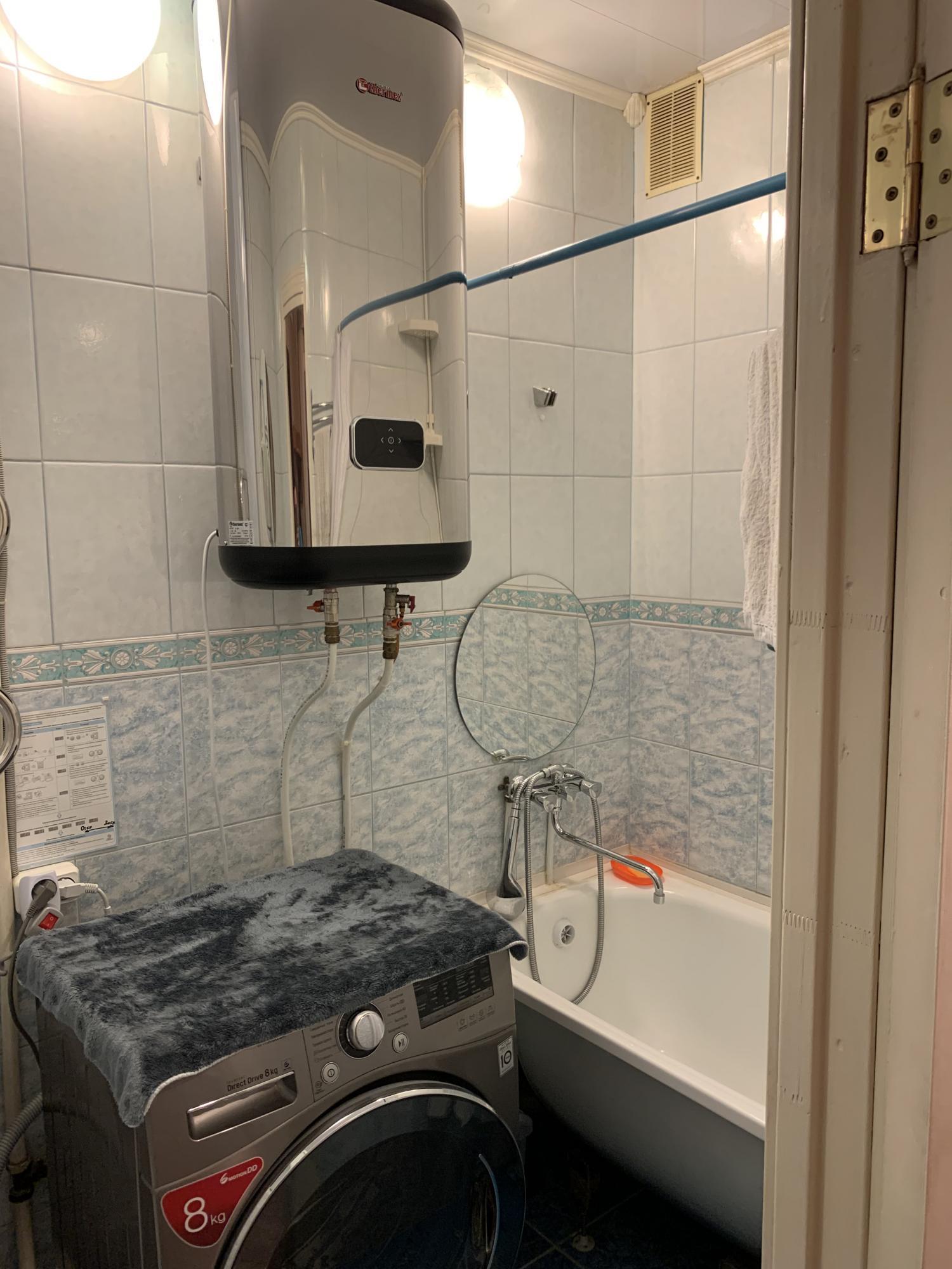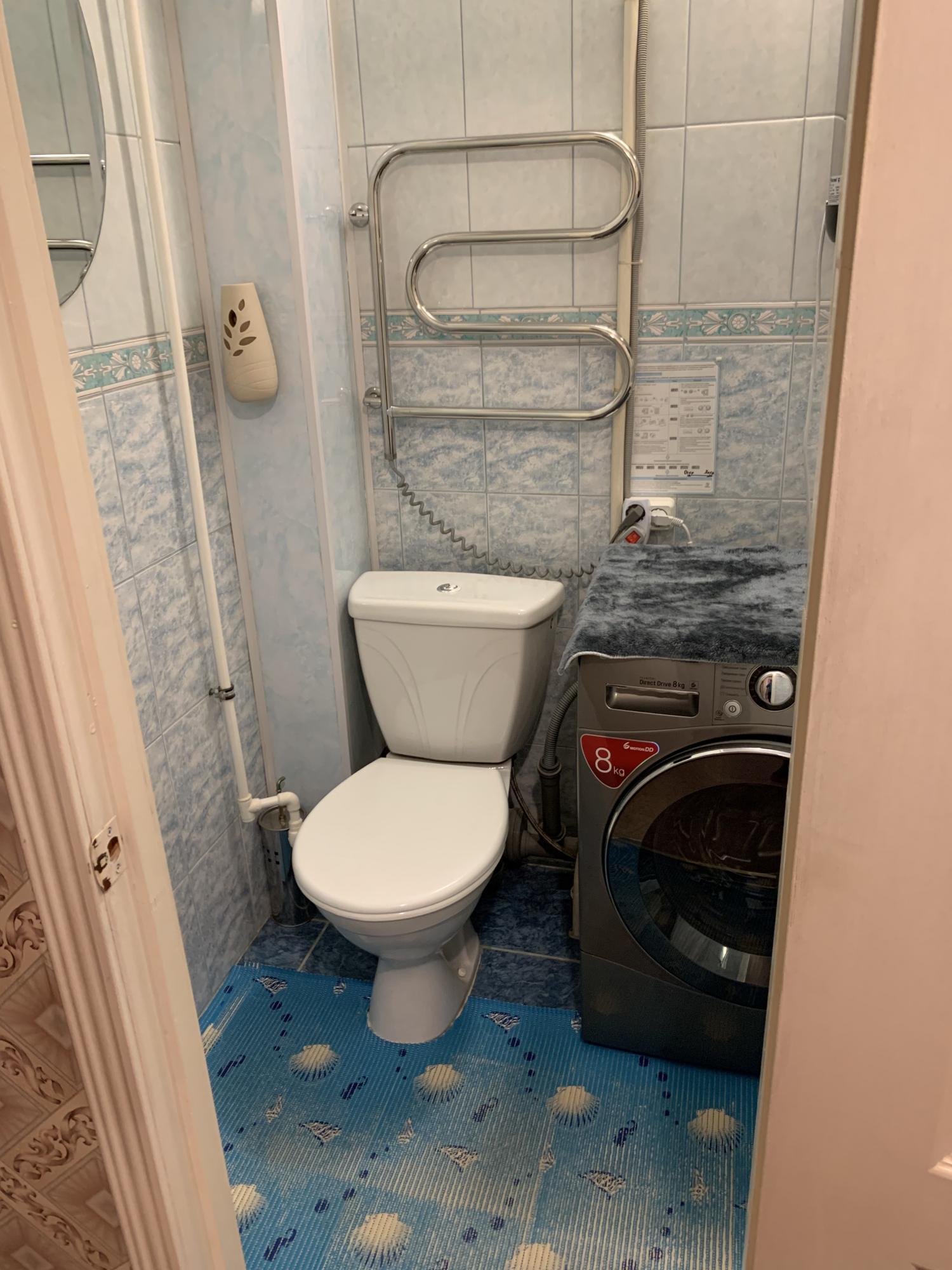 Санузел раздельный, оборудован небольшой ванной и стиральной машиной.